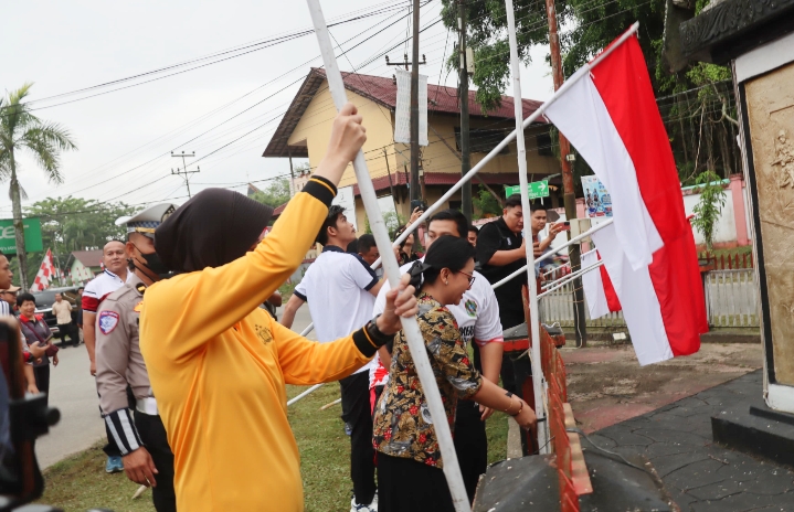 Dalam sambutannya, Bupati Karolin menyampaikan rasa syukur atas terselenggaranya kegiatan ini. “Kegiatan ini merupakan upaya kita bersama untuk menyemarakkan peringatan HUT ke-80 Kemerdekaan RI. Bendera Merah Putih bukan sekadar kain, melainkan identitas, simbol, dan alat pemersatu bangsa. Dengan berkibarnya bendera di setiap rumah, sekolah, kantor, hingga tempat umum, kita membangkitkan rasa cinta tanah air, menggugah patriotisme, dan memperkuat semangat nasionalisme, terutama di kalangan generasi muda,” ujarnya.